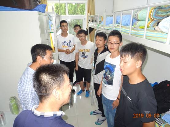 238名19级新生已经全部入学报到。为进一步掌握新生入住宿舍的具体情况,让新生感受到院领导、老师们对他们的关心与关怀,学院书记赵连章,院长张晓东在学院相关职能部门老师的陪同下深入学生宿舍,走访了部分2019级新生及家长。