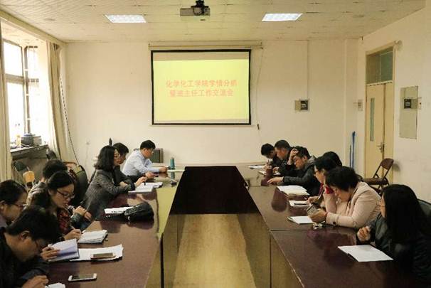 2017年度学情分析暨班主任工作交流会在慎思楼208会议室举行.院党委书记高育红,院长张晓东,教学办主任、各系主任、全体班主任老师参加了会议。