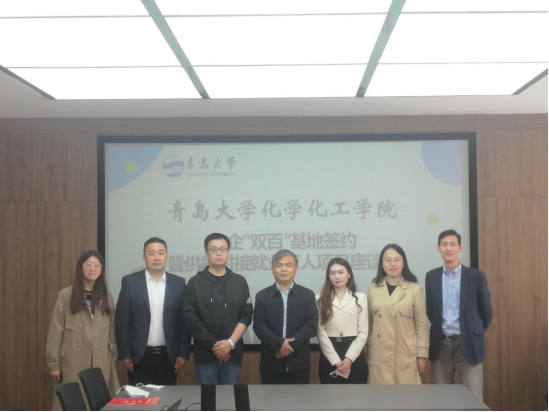 在博观楼206会议室举行院企“双百”基地签约暨供需对接就业育人项目座谈会。山东玖瑞农业集团有限公司、山东新和成控股有限公司、青岛三力本诺新材料股份有限公司的人力资源总监应邀参加对接活动。学院党委书记姜永杰、副书记李咏沙、学工办主任付刚帮、毕业生辅导员孟丽出席座谈会,座谈会由李咏沙主持。