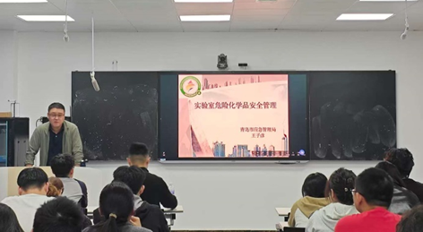 2001级化学工程与工艺专业校友,青岛市应急管理局王子彦同志开展专题培训,各科研实验室40余名学生安全员参加培训。会议由研究生辅导员周俊浩主持。