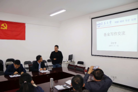 刘晓敏教授、张立学教授和邓宇甲特聘教授,在科技园D座406会议室召开国家自然科学基金申报讲座与经验交流。报告会由副院长王国明教授主持,学院中青年教师、高年级研究生等40余人参加了报告会。
