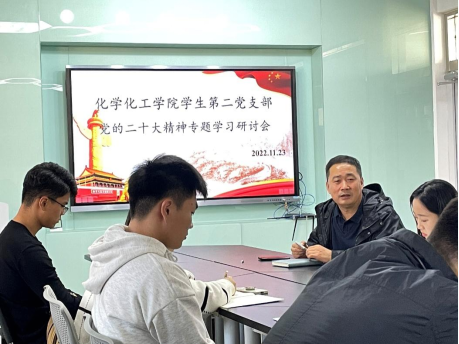 学生第二党支部在博观楼440会议室举行党的二十大精神专题学习研讨会,付刚帮老师、肖敦玺老师以及党支部全体学生党员参加会议。会议由肖敦玺老师主持。