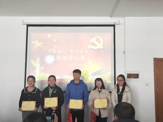 科技园D406会议室联合举办了“不忘初心、牢记使命”主题演讲比赛。本次比赛共有9名选手参赛,分别是各学生党支部推荐的优秀代表。比赛由学生第一党支部书记董永红老师、学生第二党支部书记付刚帮老师、学生第三党支部书记史氾平老师、应化系党支部朱倩倩老师、化学系党支部王荟琪老师担任评委。