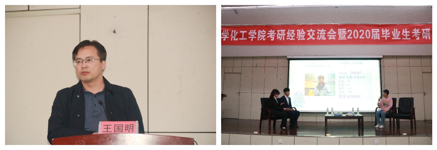 考研经验交流会暨2020届毕业生考研动员会在图书馆报告厅举行。学院党委副书记薛希洪、副院长王国明、党政办主任李志国、团委书记董永红和考研优秀学生代表参会。