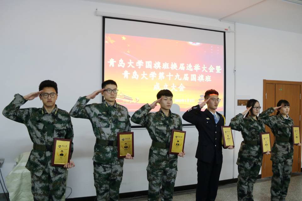 国旗班班长钟江斌进行了工作总结汇报;第十八届国旗班队员参加竞选,张国庆全票当选第十九届国旗班班长,史志军、孙栋、李晨晨、官倩文、孟璇当选第十九届国旗班副班长。