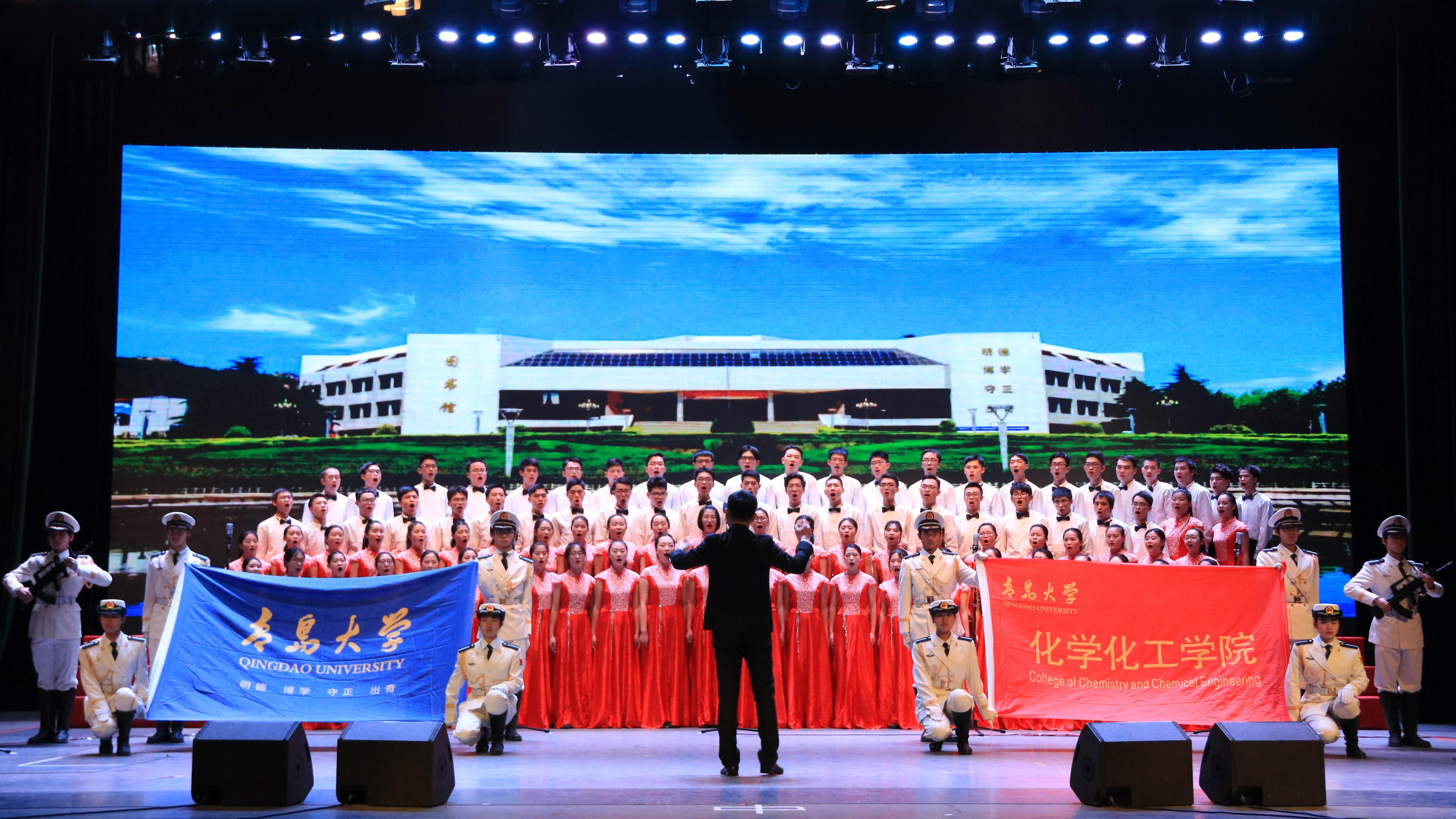 学院参赛曲目是必选歌曲《青大之歌》和自选曲目《黄水谣》。通过近两个半月准备、排练,合唱队员在训练中表现出极大的坚持与热情。比赛中,一张张朝气蓬勃的面孔,激情嘹亮的歌声震撼了在场观众。《青大之歌》演唱时,八名国旗班队员分别持小蓝视频