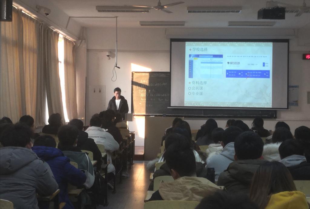 12月22日下午14:00,来自2017级化工专业的朱胜文,化学师范专业的王怡宁、孙菁菁,在博学楼301室为2018级化工专业全体学生分享了自己在考研保研过程中的心路历程和备考准备,为大家传递考研信念。