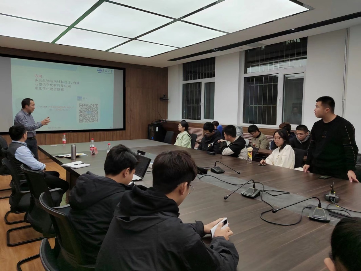 在现场互动环节,针对现场学生提出的纳米材料与靶向药物的区别、新材料的推广应用、通过人为增加酶的含量人体能否实现伤口的瞬间愈合等问题,魏刚耐心进行了解答。与会同学表示魏教授的报告生动精彩,引起了自己对蛋白质和多肽功能纳米材料浓厚的兴趣,同时为自己以后的学习和科研方面提供更加广阔的思路。