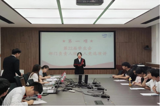 23位部门负责人候选人依次进行了竞选演讲和个人展示,现场评委老师和新一任主席团成员对候选人的表现进行打分。