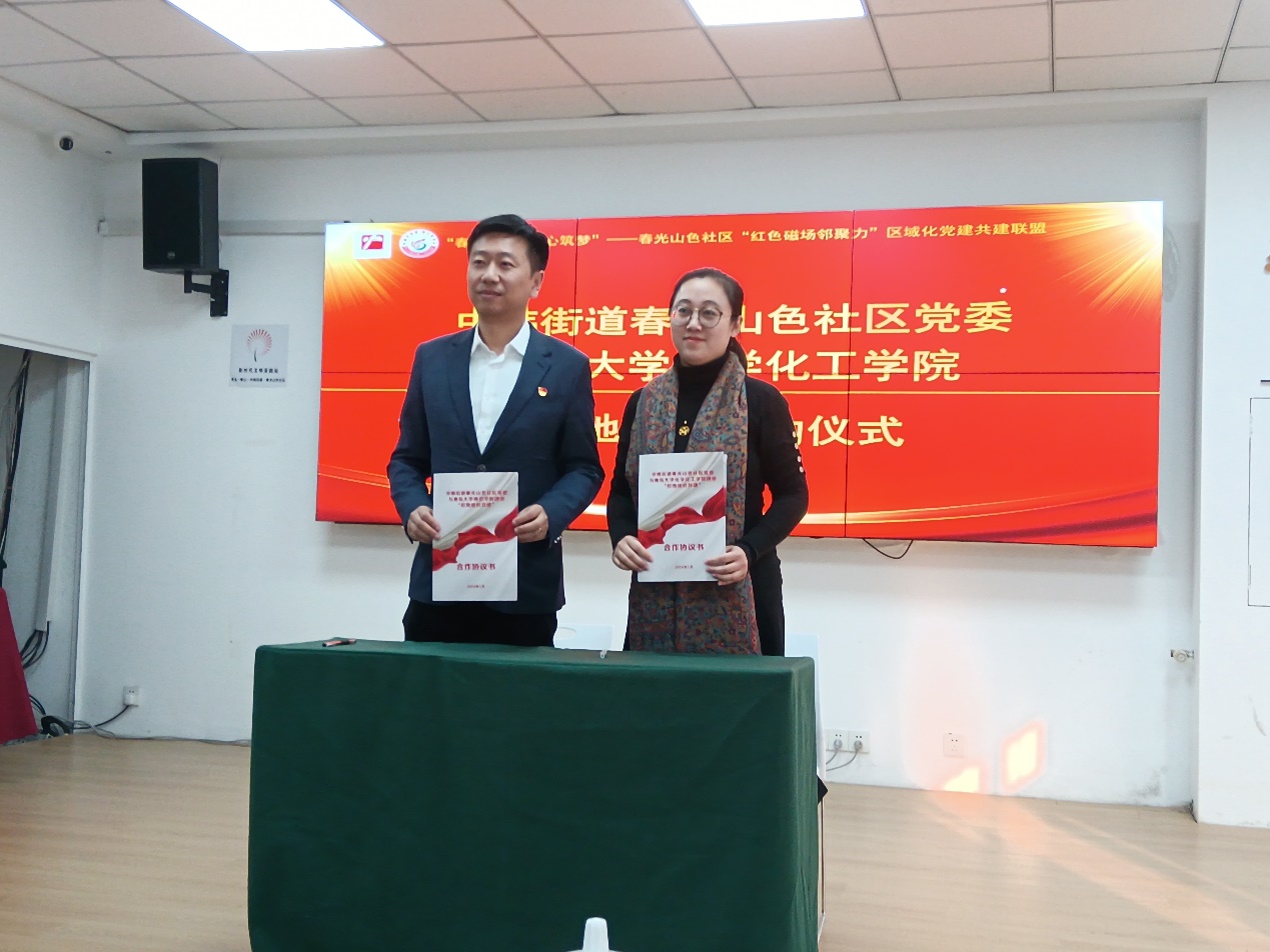 团委一直积极对接相关街道、社区,为学院团员青年扎实开展青年志愿者社区实践服务行动搭建平台,引导学生走进社会基层,积极参与和服务基层社会治理。12月28日下午,学院团委与春光山色社区党委在春光山色社区党群服务中心开展校地共建签约仪式暨“红色磁场邻聚力”党建共建联盟签约、共建单位项目发布认领、校地共建联盟和大学生社区服务实践基地揭牌仪式活动。
