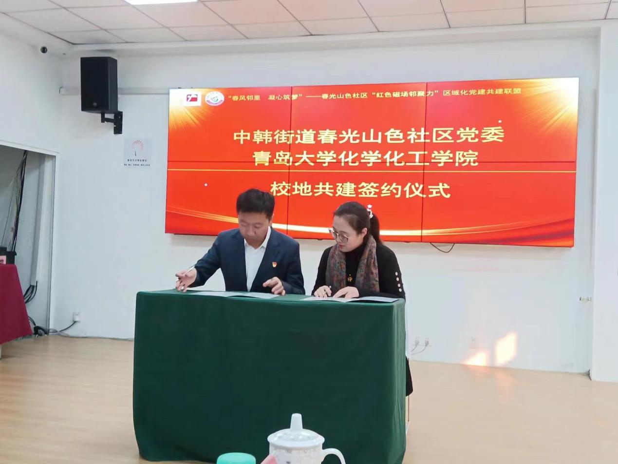 随后,中韩街道和春光山色社区与参会高校共同为“大学生社区志愿服务实践基地”、“社区校地共建联盟”揭牌,并就双方的实际情况、共建内容及认领的项目进行了的沟通交流,现场签订了校地共建合作协议,并颁发项目认领证书。