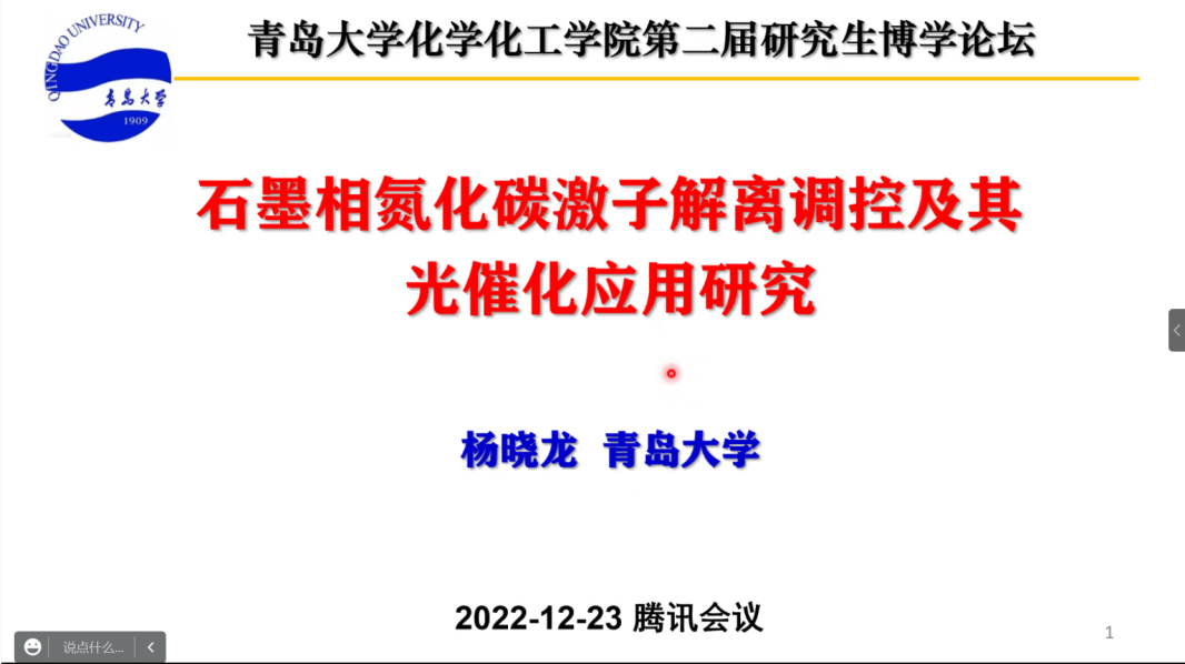 通过腾讯会议举办了第二届研究生博学论坛。论坛以“聚焦绿色化学,促进可持续发展”为主题,学院党委书记姜永杰、副院长毕赛、院内外专家学者以及学院研究生参加了论坛。论坛由青年教师联合会会长魏刚主持。