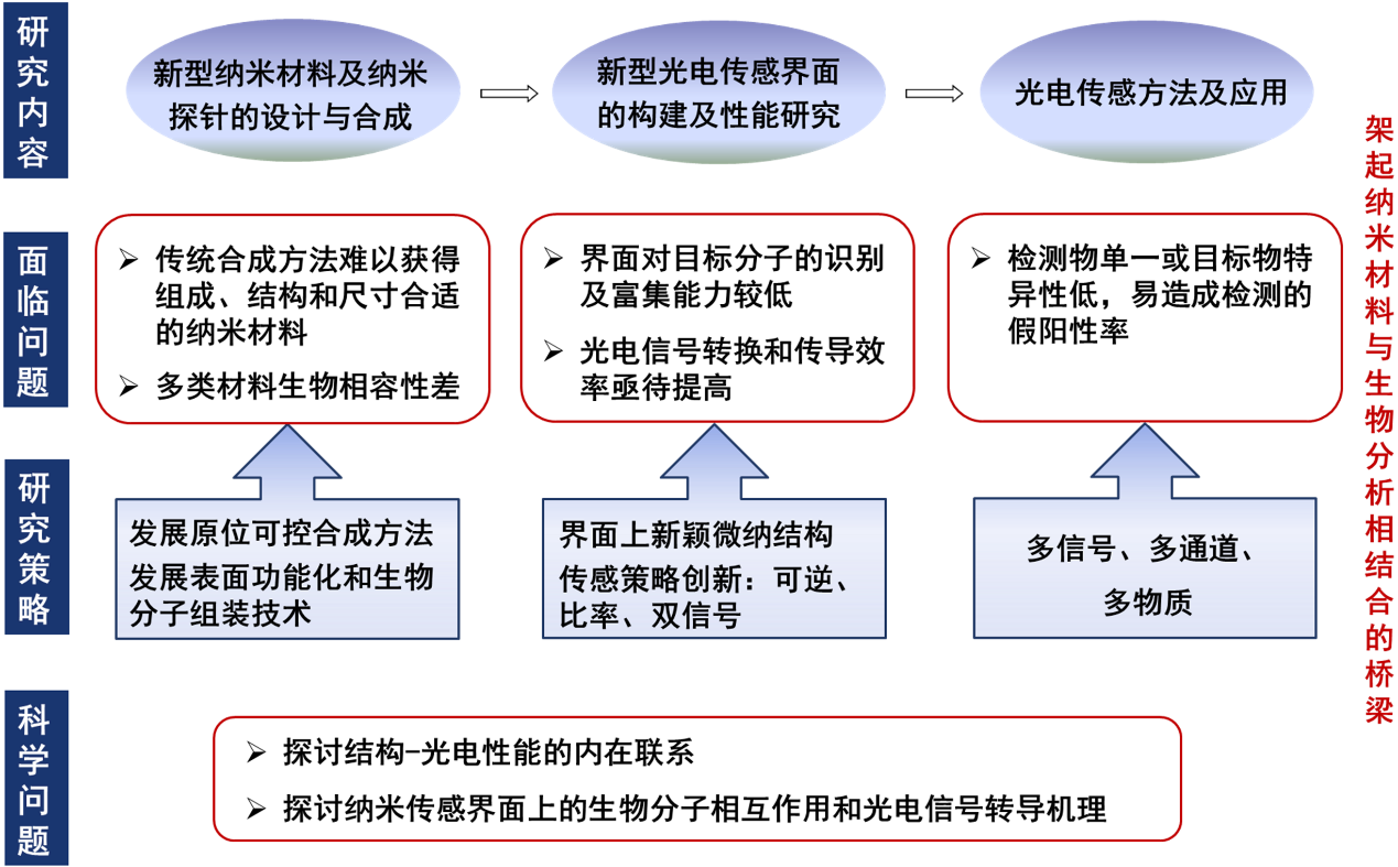 团队主要在纳米材料化学与生命分析领域从事纳米材料的制备及光电磁生物传感、生物成像、环境检测、生物能源等应用研究。承担科技部973计划子课题、国家自然科学基金、山东省自然科学基金、青岛市自然科学重点项目等多项课题;近年来,在Chem. Soc. Rev.、Anal. Chem.、Biosens. Bioelectron.、ACS Appl. Mater. Inter.、Adv. Funct. Mater.、ACS Nano等国际知名学术期刊已发表高水平论文200余篇,13篇入选高被引论文;已获批中国授权发明专利66项,美国和日本等国家授权发明专利5项;先后荣获山东省科学技术奖自然科学二等奖、山东省高校优秀科研成果自然科学一等奖、中国分析测试协会科学技术(CAIA)一等奖、青岛市科学技术奖自然科学二等奖,等等。